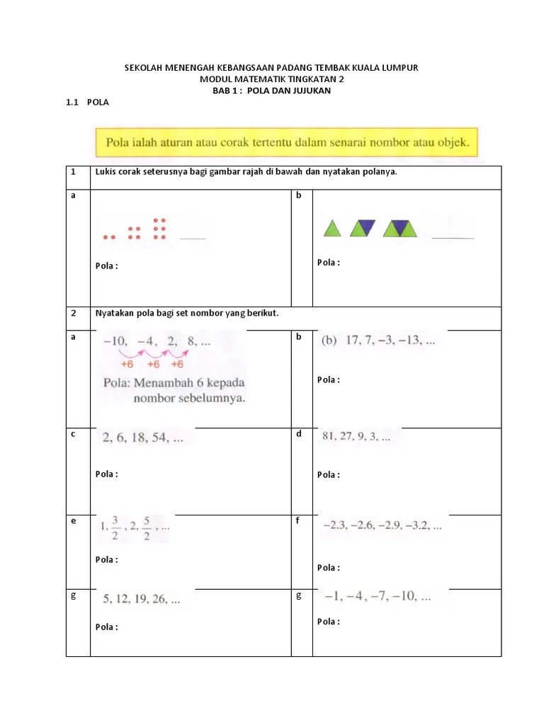 Related : Latihan Matematik Tingkatan 2 2018 : Matematik tingkatan 2 kssm bab 1 pola dan jujukan bab 2 pemfaktoran dan pecahan algebra bab 3 rumus algebra bab 4 poligon bab 5 bulatan bab 6 bentuk geometri tiga dimensi bab 7 koordinat..