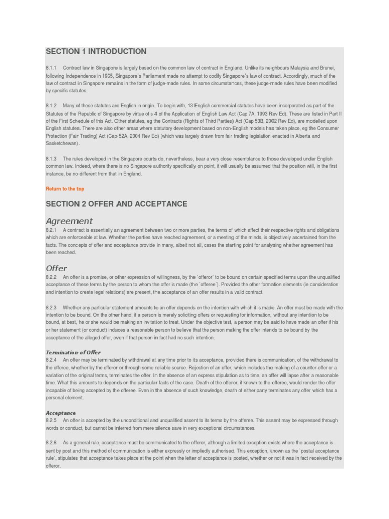 The law of contract in malaysia is governed by the contracts act 1950. An agreement is normally constituted by one party making an offer and the other party is accepting that offer. In malaysia, there is contract jurisprudence in a legislative act, the contracts act, 1950. No criticism or flaming allowed 1.3. The remedy of specific performance presupposes the existence of a valid contract between the parties to the controversy.