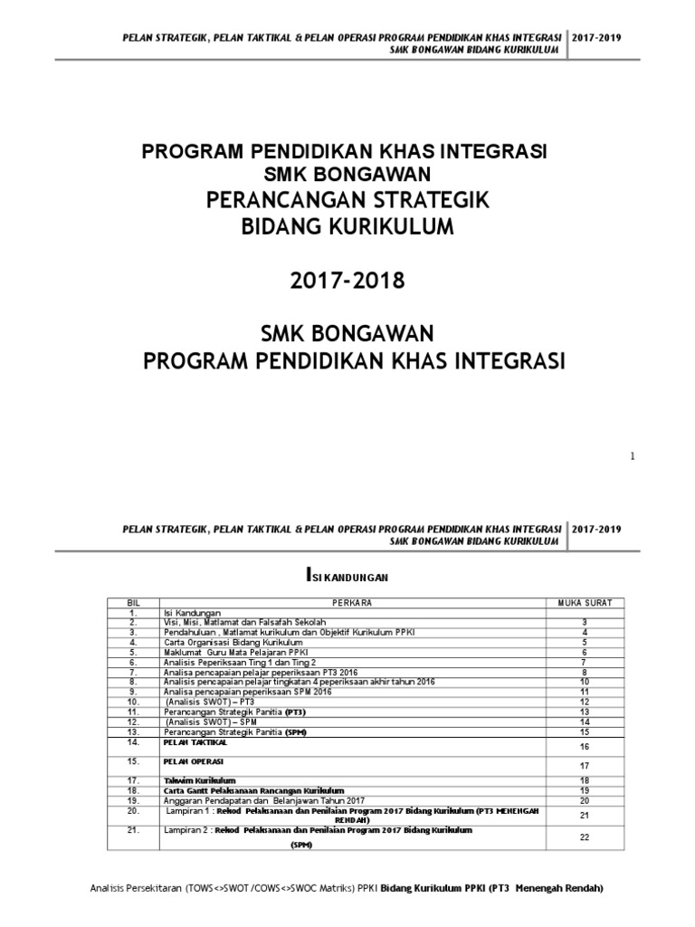 Perancangan strategik/ pelan tindakan sekolah. Pasukan spm 2017 > . Menyediakan surat edaran yang ada keratan jawapan ibu bapa mengenai kehadiran mereka pada hari terbuka. Pendahuluan buku perancangan strategik ini yang menghimpunkan pelan strategik. Strategi pelaksanaan bagi mencapai matlamat strategik kurikulum.