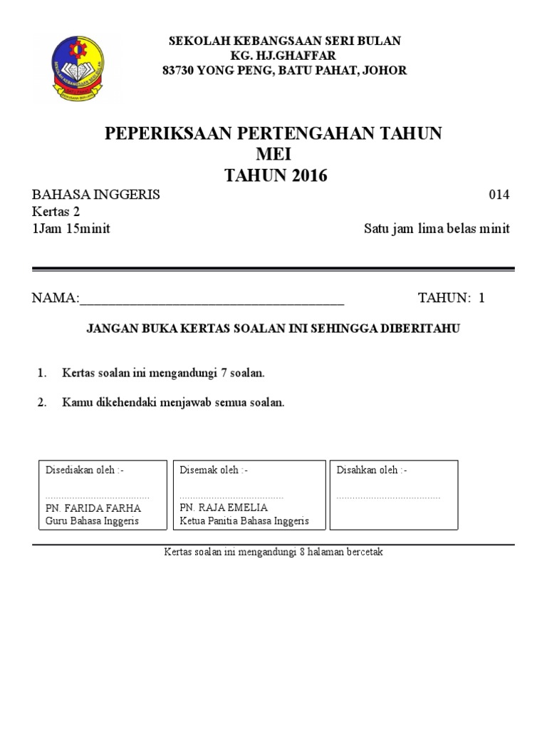 Related : Soalan Peperiksaan Tahun 2 2018 : 1 / Check spelling or type a new query..